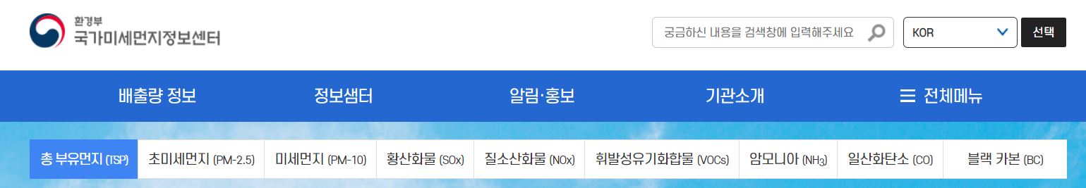 국가미세먼지정보센터 홈페이지