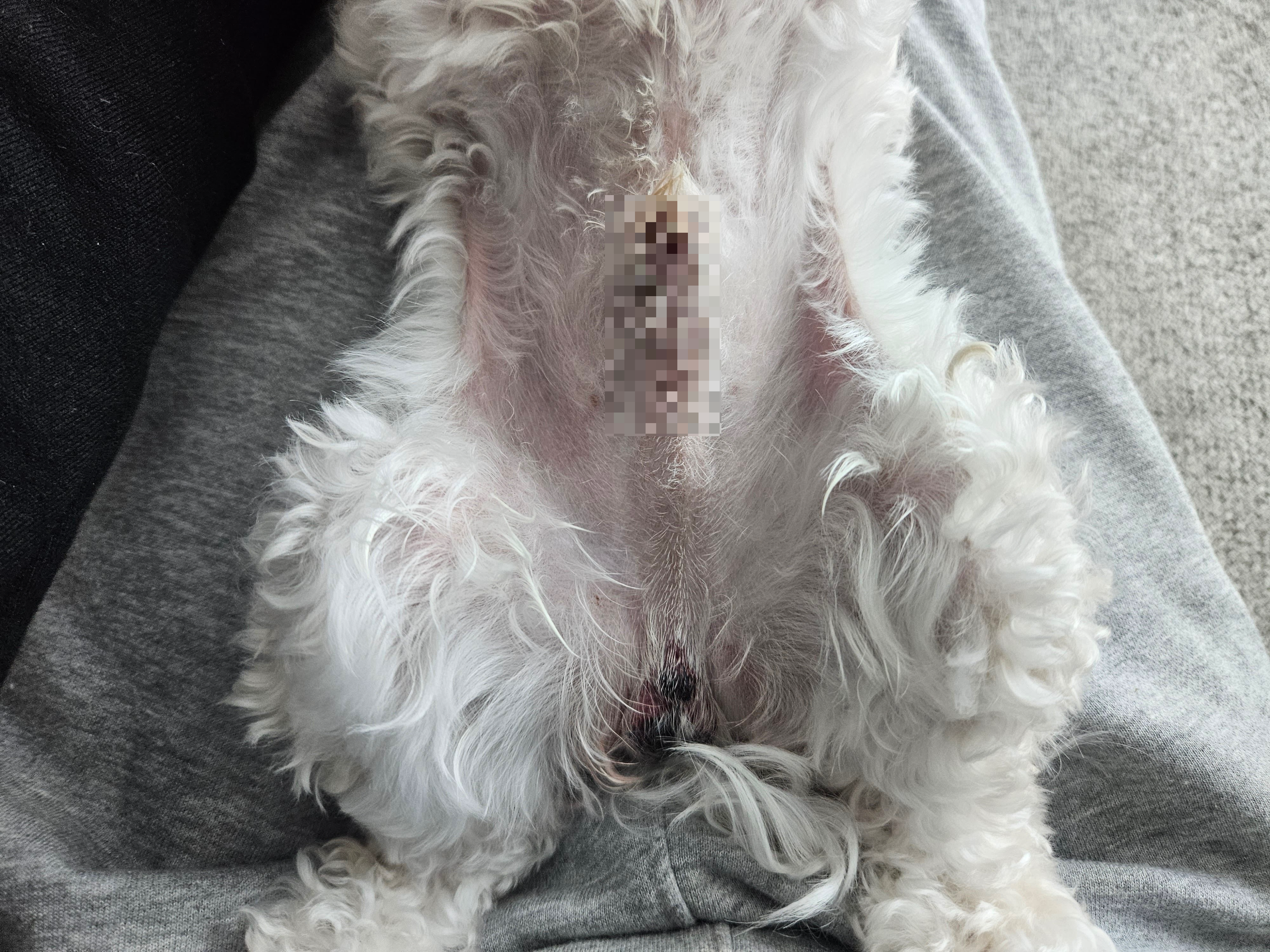 수술 부위는 최대 3일까지 멍이 들 수 있다고 하는데, 매우 가렵고 혀로 핥으려고 합니다. 4일 정도 지났는데 아직 멍이 남아있습니다.