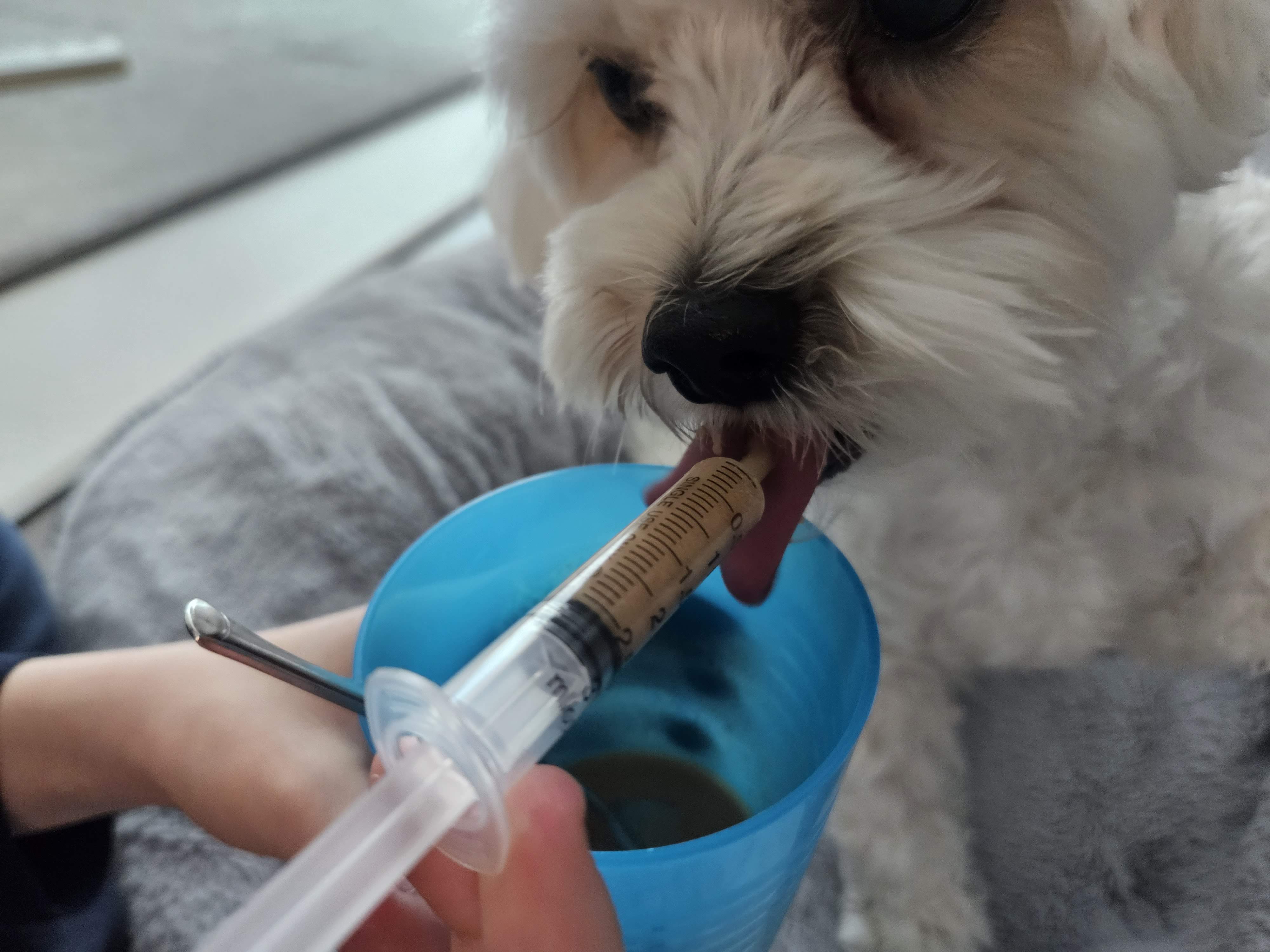 로얄캐닌리커버리 많이 먹으면 설사가 나서 물 한스푼을 주사기에 섞어서 먹였는데…ㅡㅡ;;