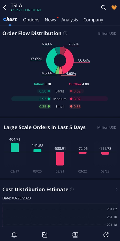 실시간 견적을 표시한다는 점에서 Yahoo Finance 앱과 거의 비슷합니다. 깔끔한 디자인의 앱입니다. 기본 설정에 따라 Yahoo Finance와 Webul 중에서 선택할 수 있습니다. 각 항목에 들어가 Analysis 메뉴를 보면 다음과 같이 투자자의 포지션 배분을 확인하기 위해 사용하는 Position Cost Allocation이 있습니다. 나. 제도적 지위(대규모: 제도적).