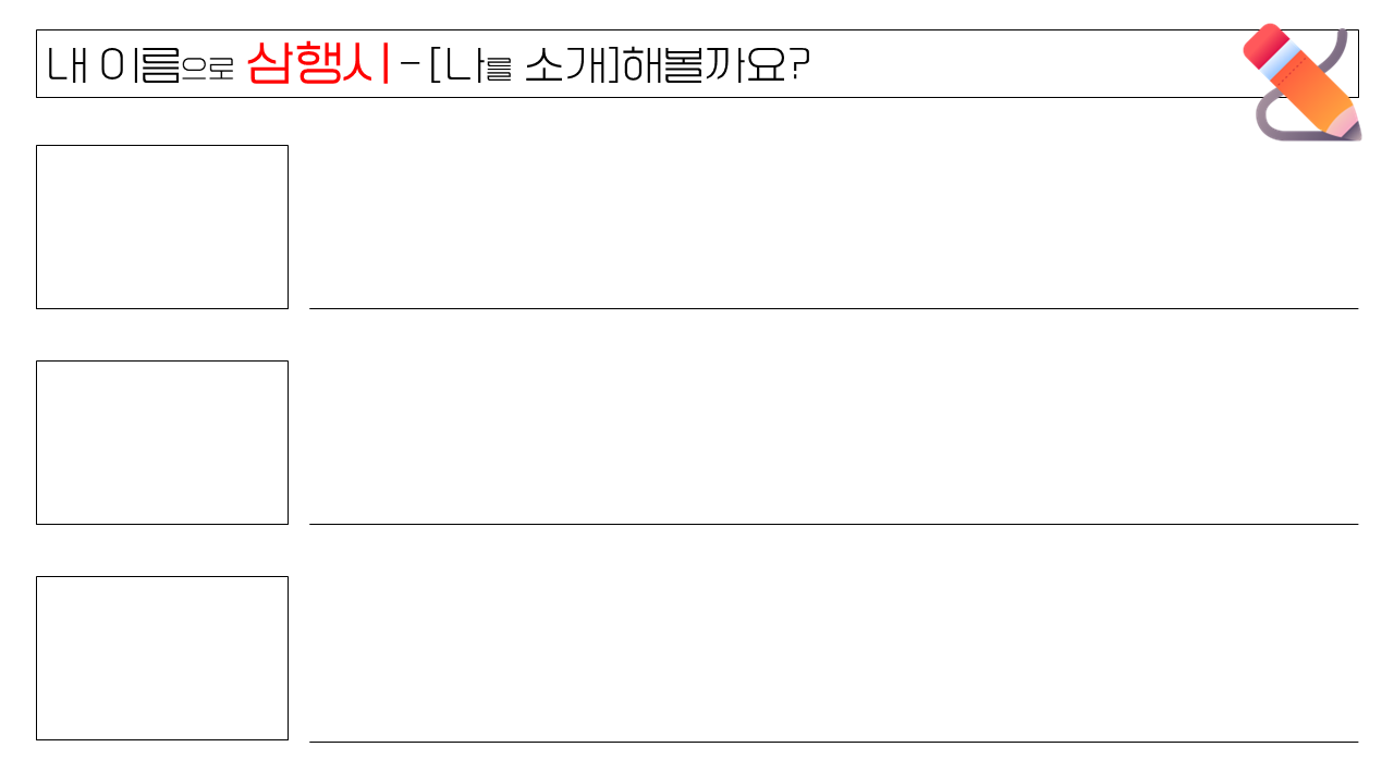 – 이름으로 삼행시를 만들다 보면 다양한 이야기가 나옵니다.