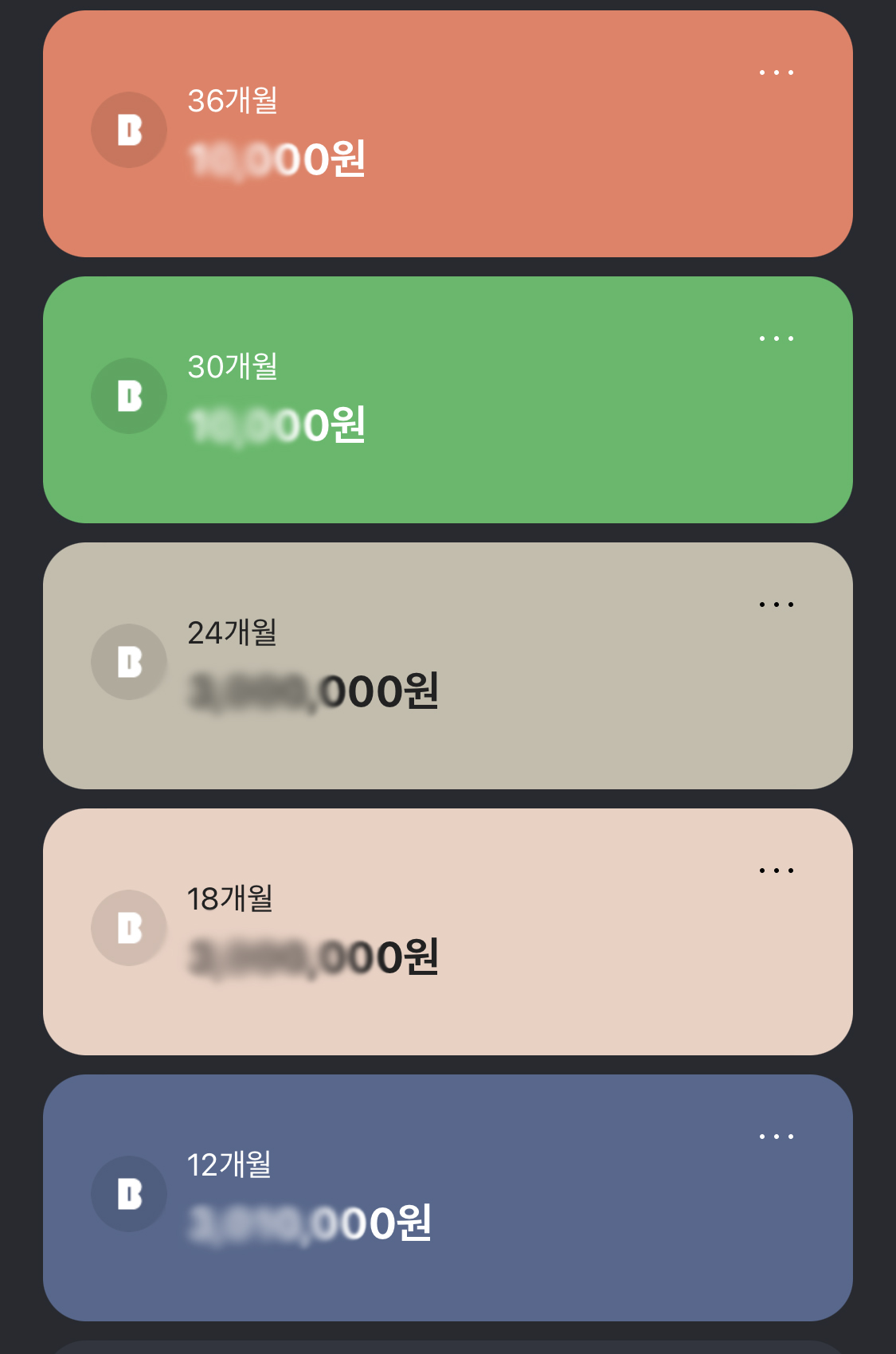 계정을 생성하면 각 계정의 금액이 앱에 표시됩니다.