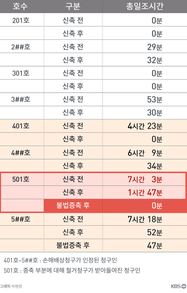뿐만 아니라 오전 8시부터 오후 4시 사이에는 8시간, 최소 4시간의 일조량이 확보돼야 한다고 했습니다.만약 이것이 지켜지지 않는다면, 이것은 일조권 소송을 고려해야 할 사안이라고 말했습니다. 즉 이것을 먼저 확인해봐야 하는 이유는 건설사를 상대로 소송을 하는 문제이기 때문에 단지 감정적인 호소만으로는 이길 수 없기 때문이라고 했습니다.
