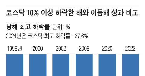 2000년 IT 버블 붕괴 이후 코스닥 지수는 연초 대비 최대 -80% 하락했다. IT붐은 한순간에 사라지고 시장은 얼어붙었다. 그러나 2001년에는 코스닥지수가 70% 이상 상승하며 반등했다.