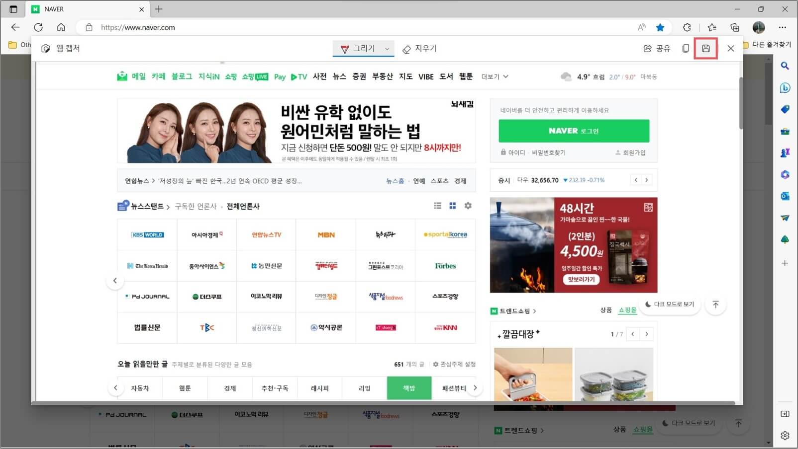 2. Microsoft Edge 웹 브라우저 전체 캡처 방법(스크롤 캡처)
