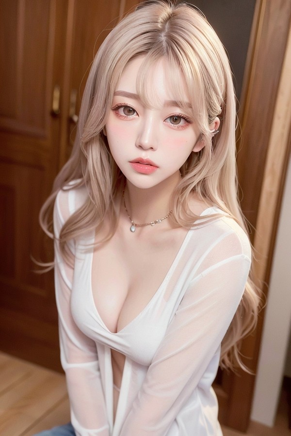 AI LOOKBOOK: 당신을 바라보는 뷰티걸 화이트 셔츠 시스루룩 | 시스루 룩 |시